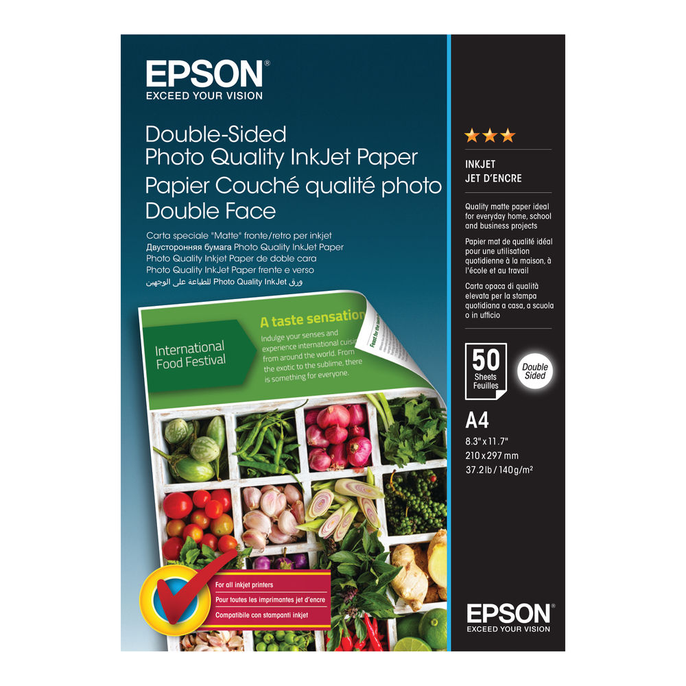 Epson (A4) 140g/m2 Double-Sided Photo Quality Inkjet Paper - Pack of 50 Sheets