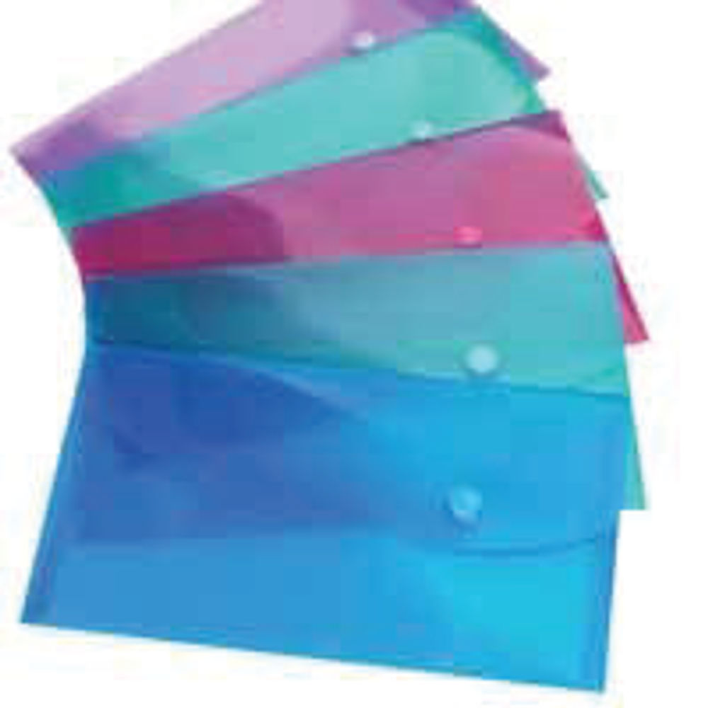 Rapesco Pastel Transparent (Foolscap) Polypropylene Popper Wallet (Assorted Transparent Pastel Colours) - Pack of 5