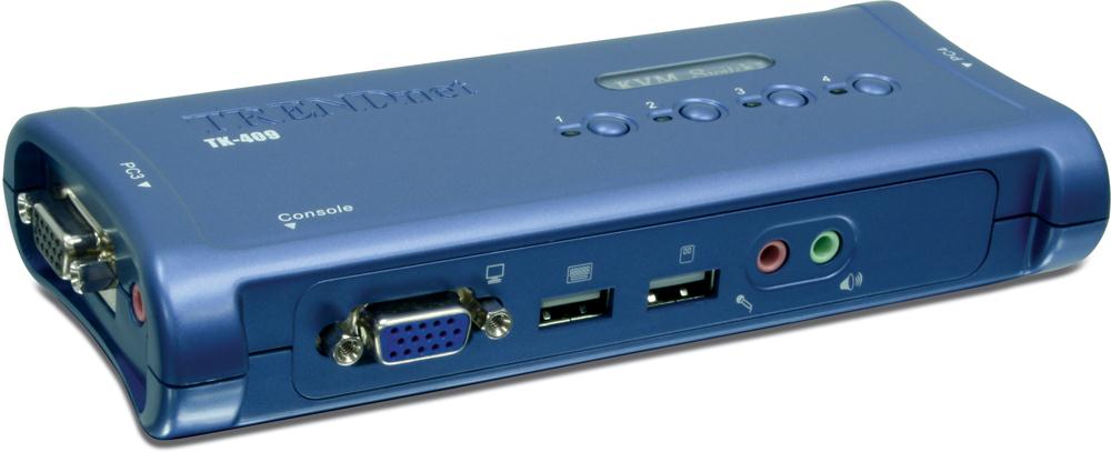 TRENDnet TK-409K 4-Port USB KVM Switch Kit with Audio (Blue)