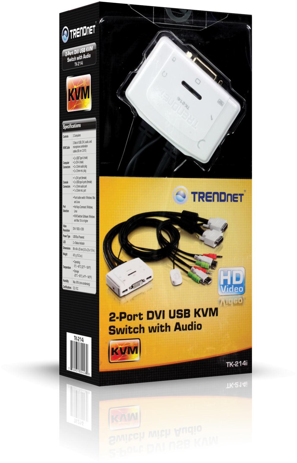 TRENDnet TK-214i 2-Port DVI USB KVM Switch Kit with Audio (White)