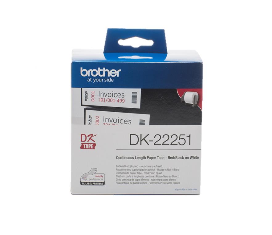 Brother DK Labels DK-22251 (62mm x 15.24m) Continuous Paper Labelling Tape (Red/Black On White)1 Roll