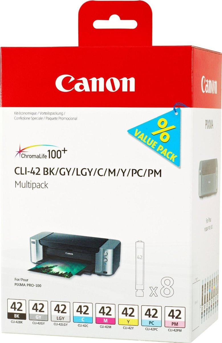 Canon CLI-42 (900 Black/600 Cyan/416 Magenta/284 Yellow/292 Photo Cyan/169 Photo Magenta/492 Grey/835 Light Grey Photos) Ink Cartridge Pack of 8