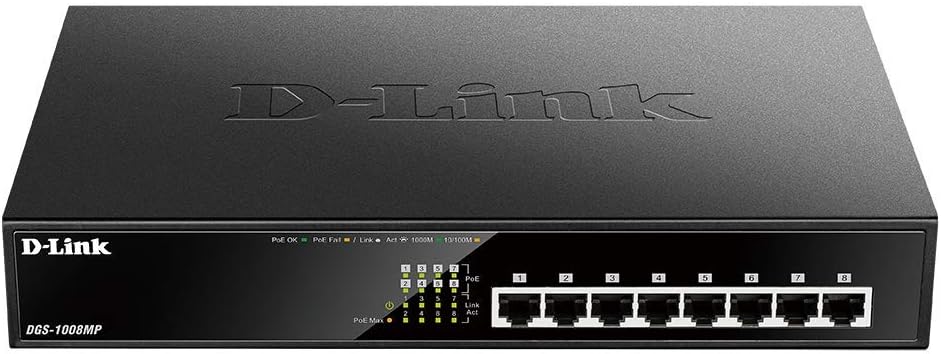 D-Link DGS-1008MP 8-Port RJ-45 Unmanaged Gigabit PoE+ Switch (Black)