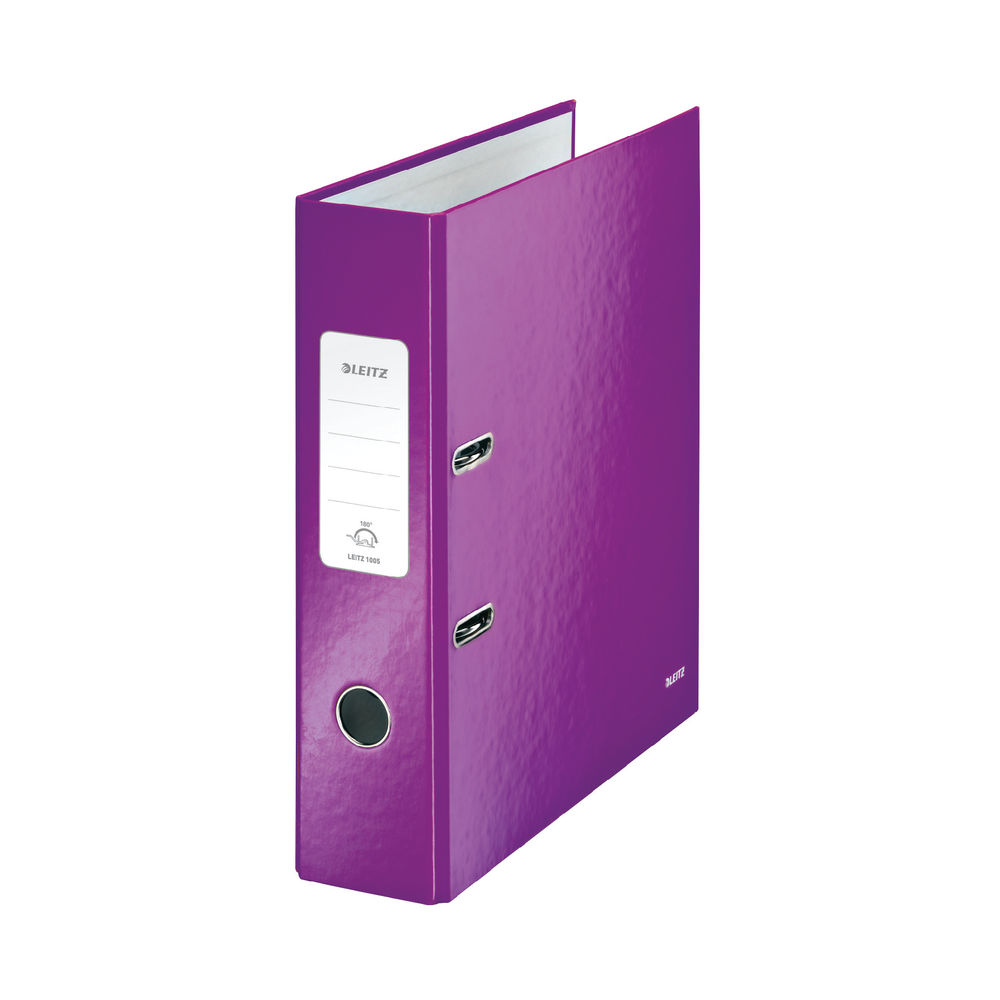 Leitz WOW (A4) 80mm Spine Laminated Lever Arch File (Purple) Pack of 10