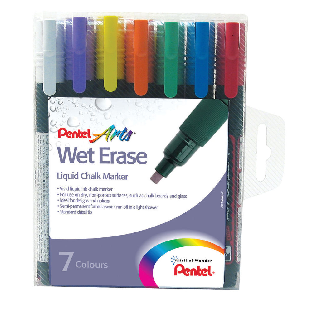 Pentel Wet Erase SMW26 Chalk Markers (Assorted Colours) - Pack of 7