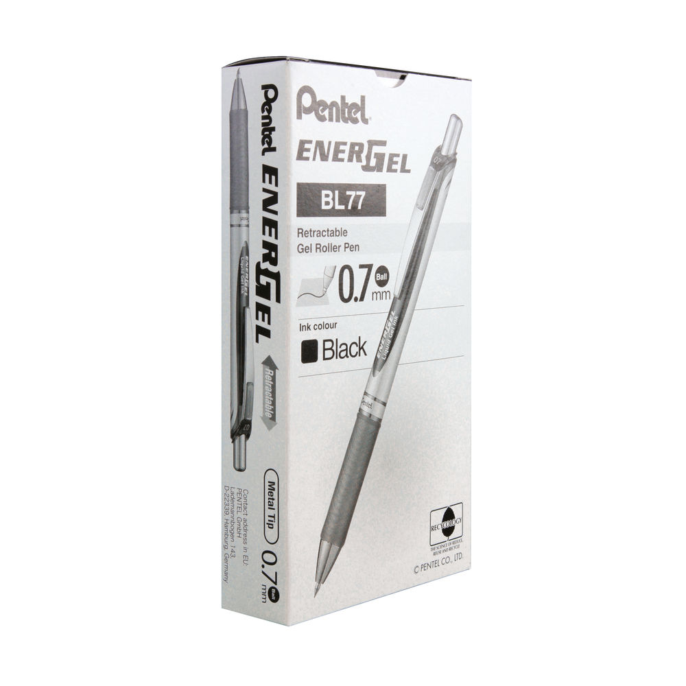 Pentel EnerGel XM Retractable Gel Pen 0.7mm Tip Width 0.35mm Line Width (Black) Pack of 12