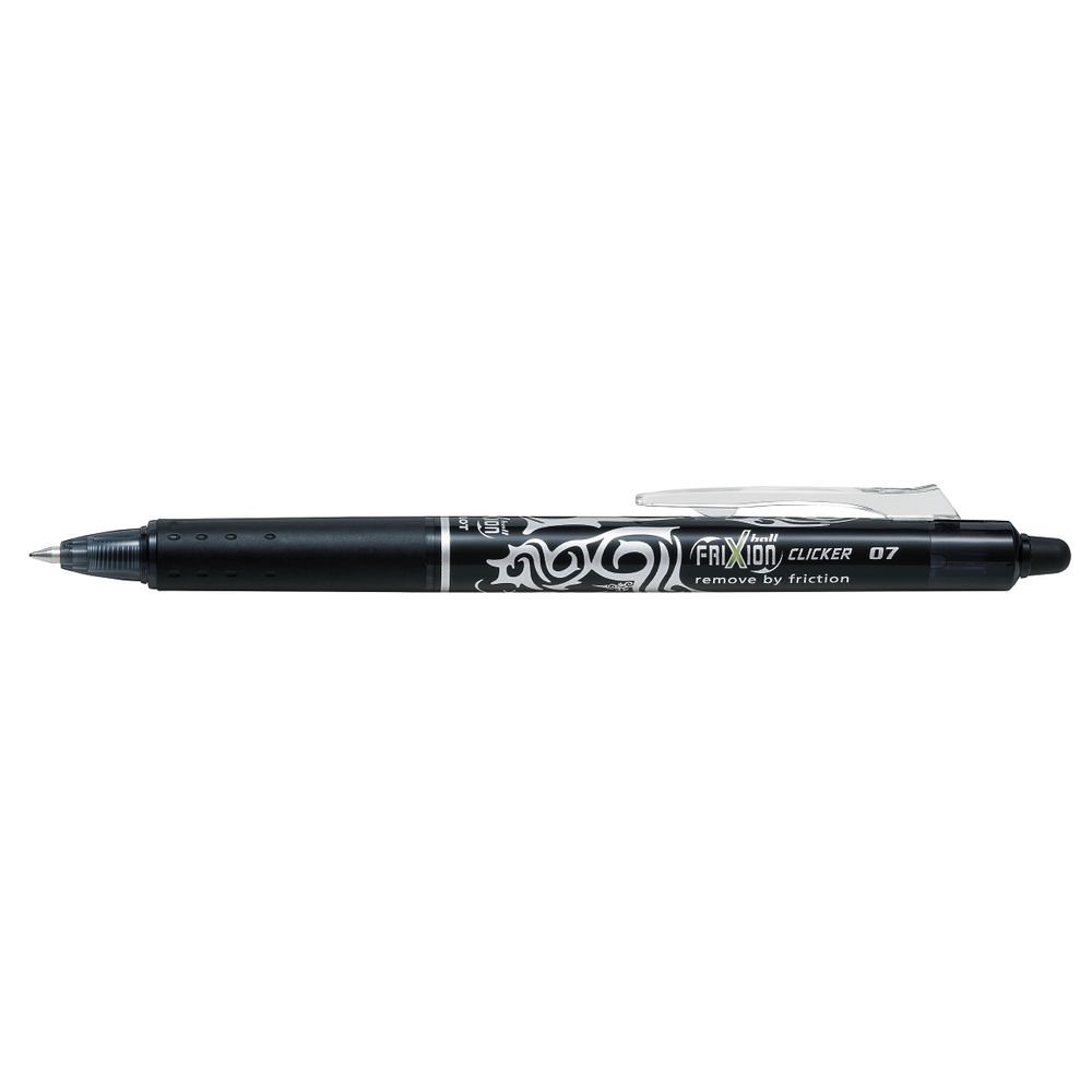 Pilot FriXion Clicker Retractable Erasable Rollerball Pen 0.7mm Tip 0.35mm Line (Black) Pack of 12
