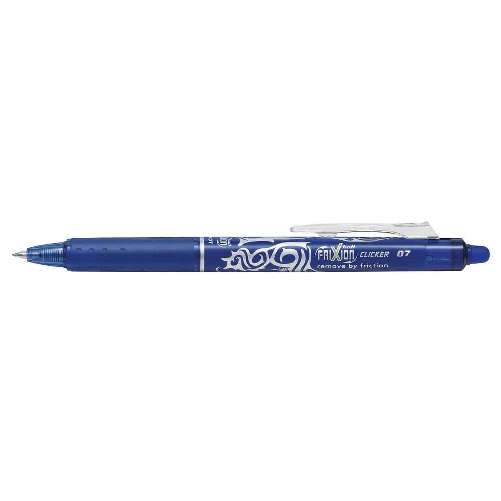 Pilot FriXion Clicker Rollerball Retractable Erasable Pen 0.7mm Tip 0.35mm Line (Blue) Pack of 12