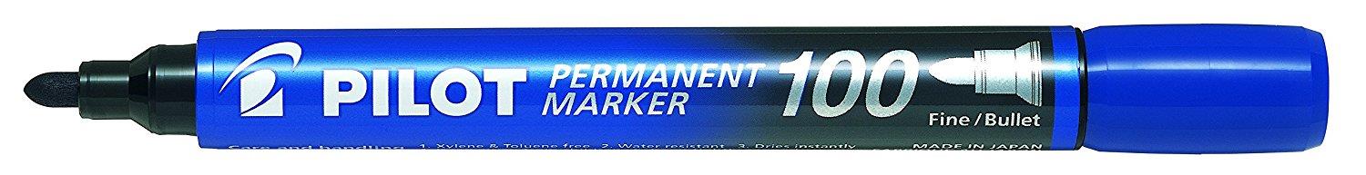 Pilot 100 Permanent Markers Bullet Tip Line Width (1.0mm) Tip Width (4.5mm) Assorted (Pack of 4)