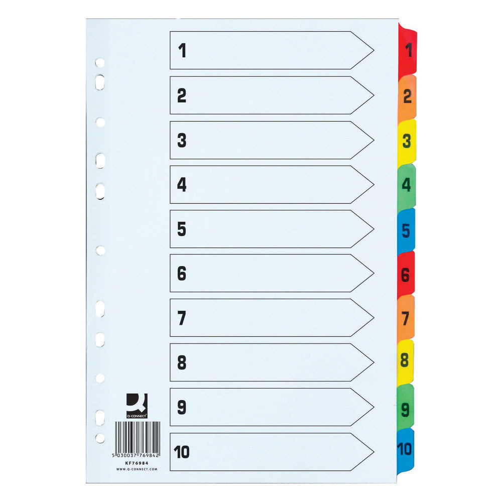 Q Connect Extra Wide 1-10 Part Index Reinforced Board Divider (Multi-Colour)