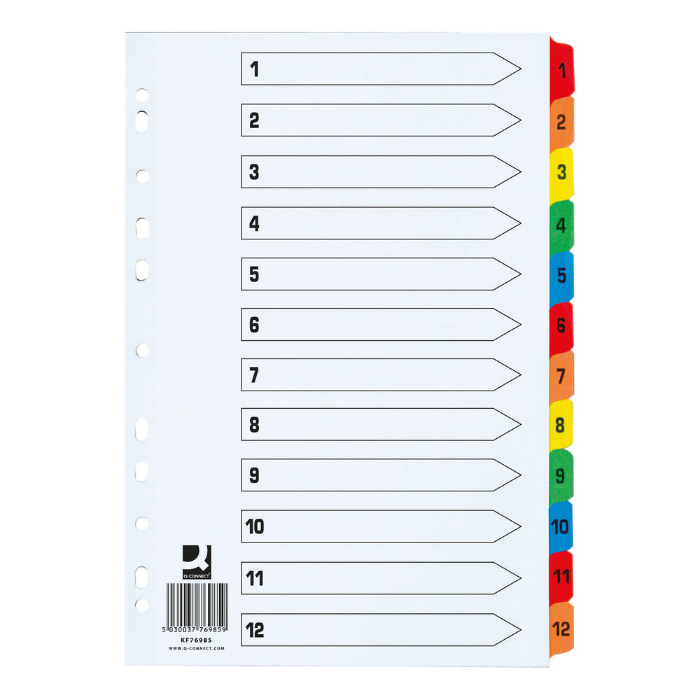 Q Connect Extra Wide 1-12 Part Index Reinforced Board Divider (Multi-Colour)