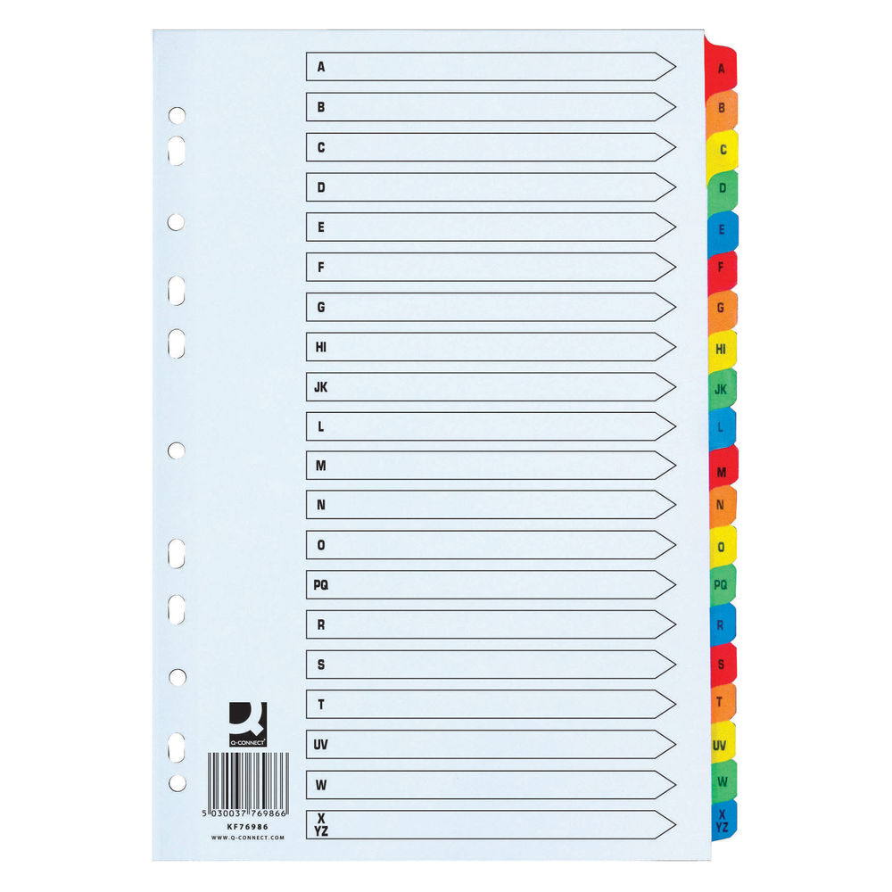Q Connect Extra Wide 20 Part A-Z Index Reinforced Board Divider (Multi-Colour)
